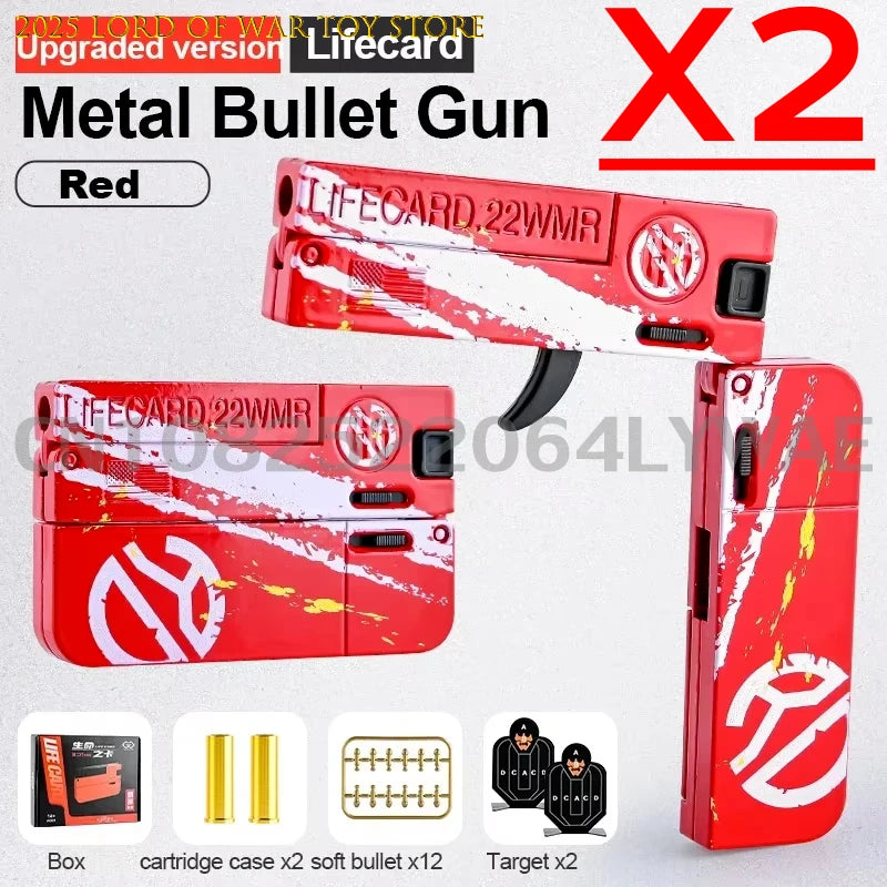 1-2PCS 2.0 Upgraded Lifecard Alloy Folding Gun Toy Gun Soft Bullet Blaster Shooting Model Pistol For Adults Kids Boys Gifts