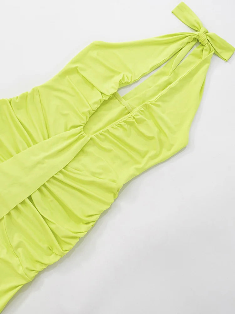 Beyprern Gorgeous Womens Halter Plunging V Neck Ruched Long Straps Maxi Dress Holiday Outfits Sexy Backless Pleated Party Dress