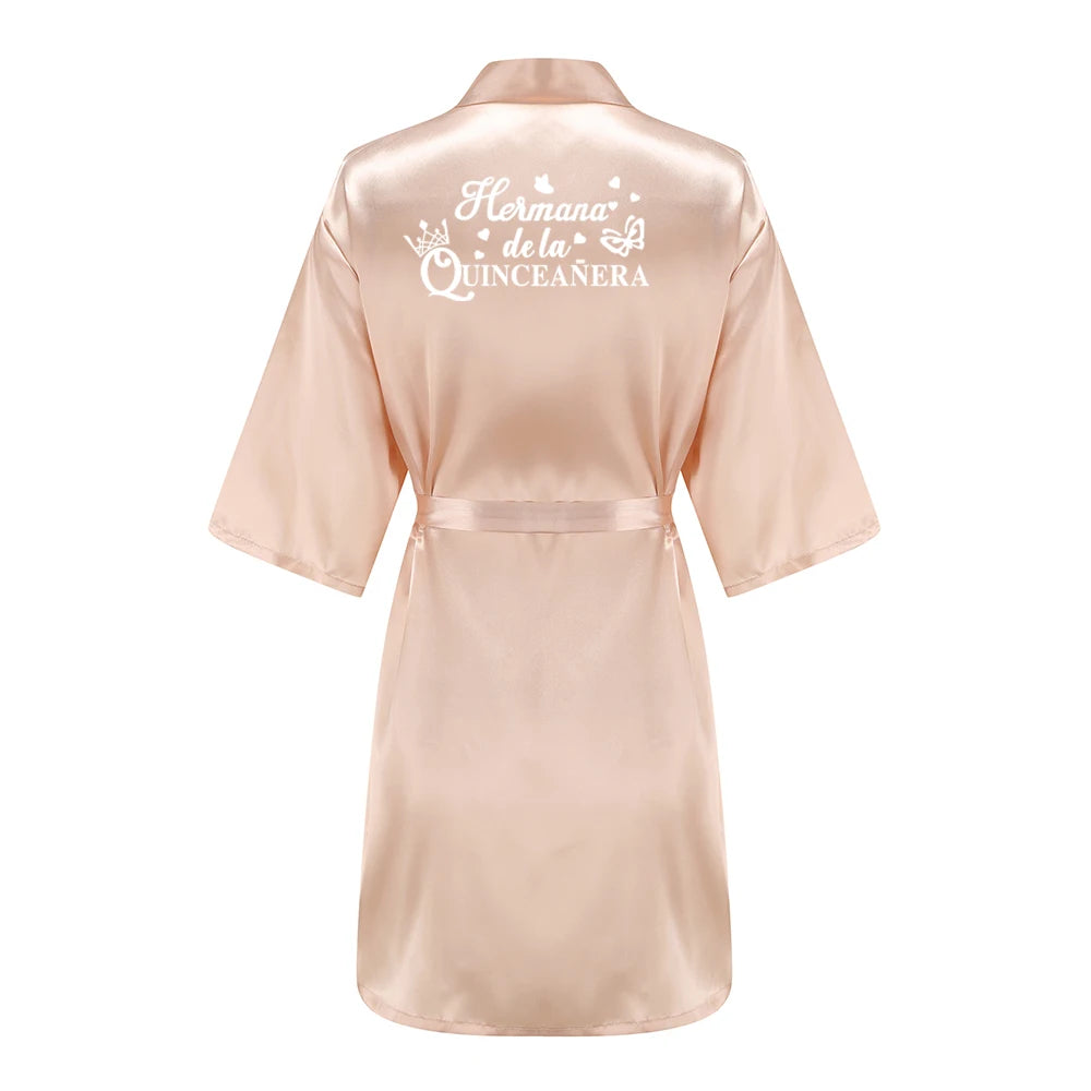 This robe offers a thoughtful balance of style and practicality for milestone moments. The satin-like finish provides a polished look in party prep and photos, while the lightweight polyester keeps you comfortable during warm-weather events. The above-the-knee length and half-sleeve design offer just-right coverage for moving between makeup, fittings, and celebration moments. The MIS XV lettering adds a distinctive touch that makes the garment feel special without overpowering the overall outfit. Easy to care for, it doubles as a cozy nightgown or a chic lounging piece after the party, giving you a versatile keepsake you’ll cherish beyond the celebration.