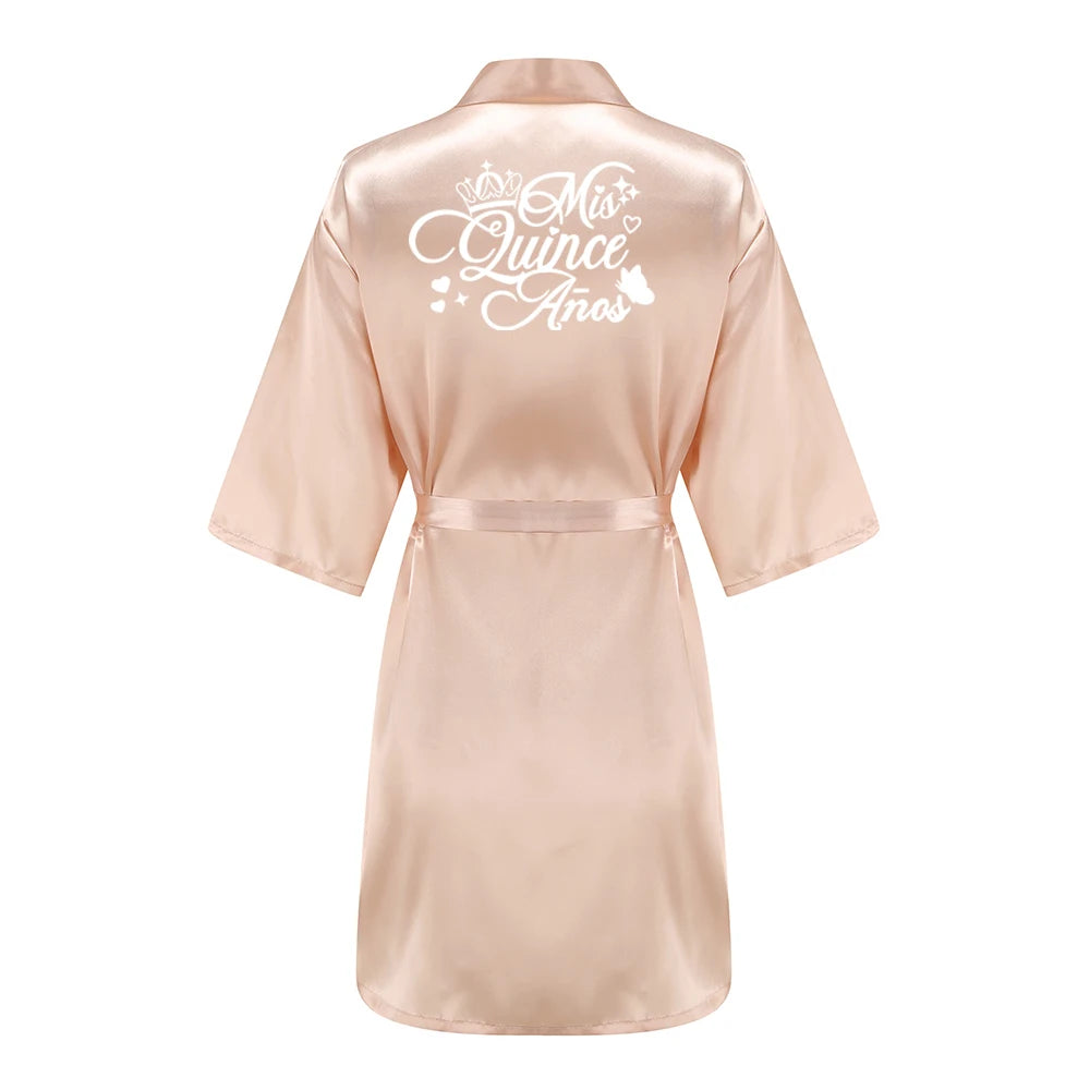 Mis15 Años Robe 15 Years Girl Birthday Party Robes Quinceanera Robe Mis XV Bathrobe Silkly Nightgown